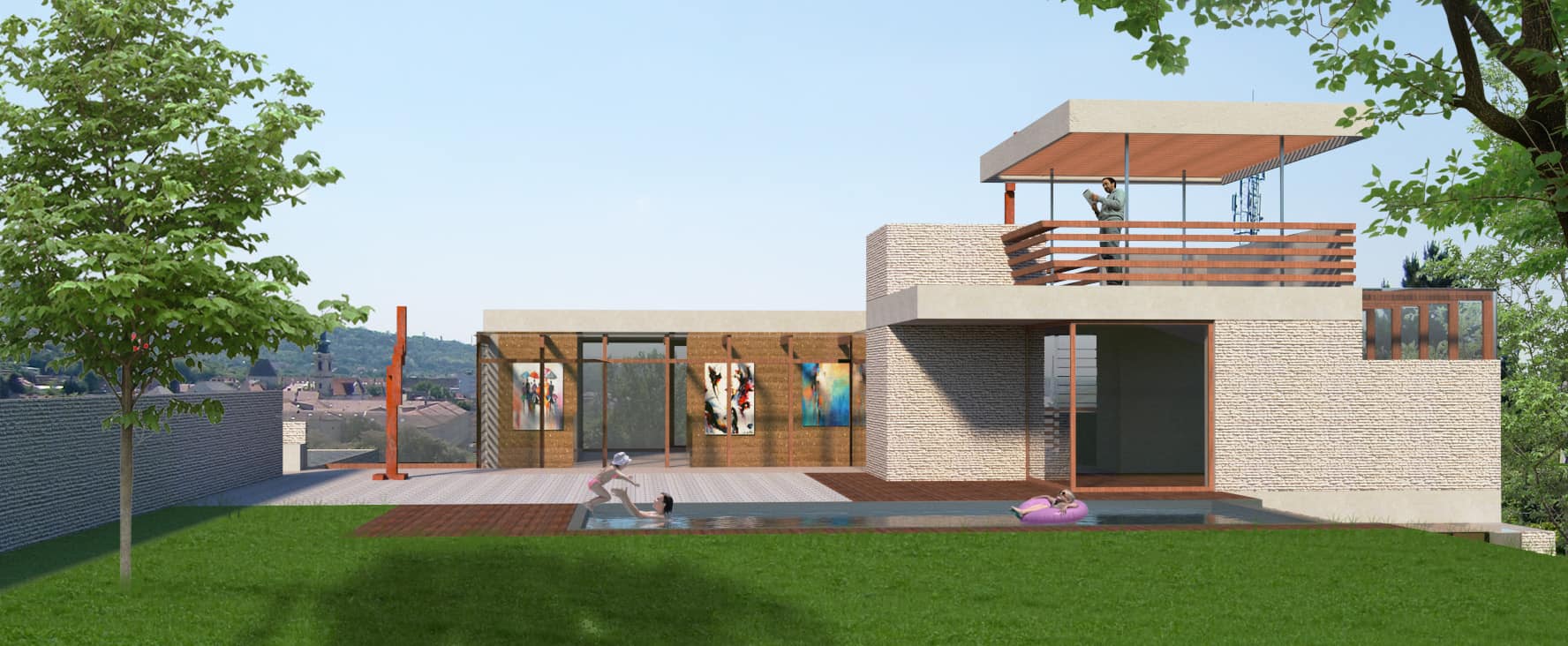 Dachterrasse, Endless Pool, Ausstellungsflächen, Hof, Terrasse, Balkon, Wellness, Stampflehmwand